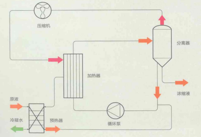 MVR蒸發器是高效節能蒸發系統,其原理是將蒸發的二次元蒸汽通過壓縮機加壓升溫,提高蒸汽的熱熔并作為熱源給物料加熱,從而實現循環蒸發,冷凝下來的熱水再與原料換熱,進一步回收熱量,實現了潛熱的充分利用,答復降低蒸發能耗,節約運行成本。